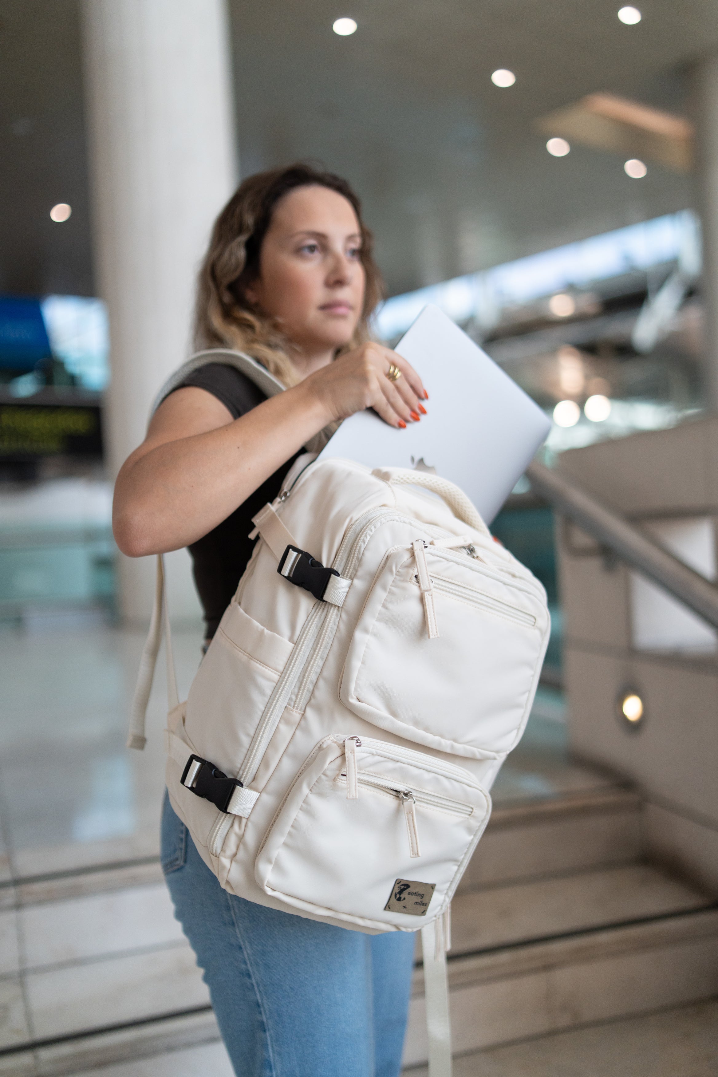 Esta nova versão conta com mais bolsos organizadores, o compartimento do computador passou para as costas, bolso anti-roubo para passaporte, bolsos para liquidos.